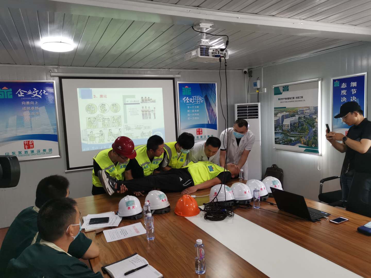 2020年7月10日上午10時(shí),濟(jì)寧市人力資源和社會(huì)保障局、濟(jì)寧市衛(wèi)生健康委員會(huì)和濟(jì)寧高新區(qū)人力資源部,聯(lián)合在我公司海達(dá)會(huì)展中心項(xiàng)目舉行了2020年濟(jì)寧市第一期高溫天氣勞動(dòng)保護(hù)培訓(xùn)和高溫中暑應(yīng)急演練。